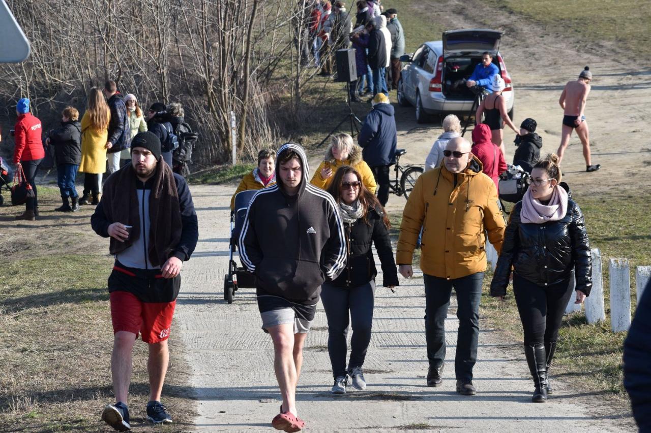 Magyarországról, Pozsonyból, Dunaszerdahelyről, Nyitráról, Vágsellyéről, Komáromból, Holícsról, Szencről és Garamszentkeresztről is érkeztek vasárnap délutánra téli úszók, hogy a szlovákiai 16. összpontosításon (2020.2.16.) megmerüljenek a Vág-Duna vízében. Az úszókat Horváth Árpád polgármester köszöntötte, majd a hazai Rozmár-klub nevében Marián Sládek ismertette a távokat (200m, 500m, 700m). A mintegy félszáz résztvevő számára igazán tavaszias, meleg időt biztosítottak a szervezők, ám a nemzetközi téli úszók normájának megfelelt a víz, amely csak 5,6 °C-os volt.